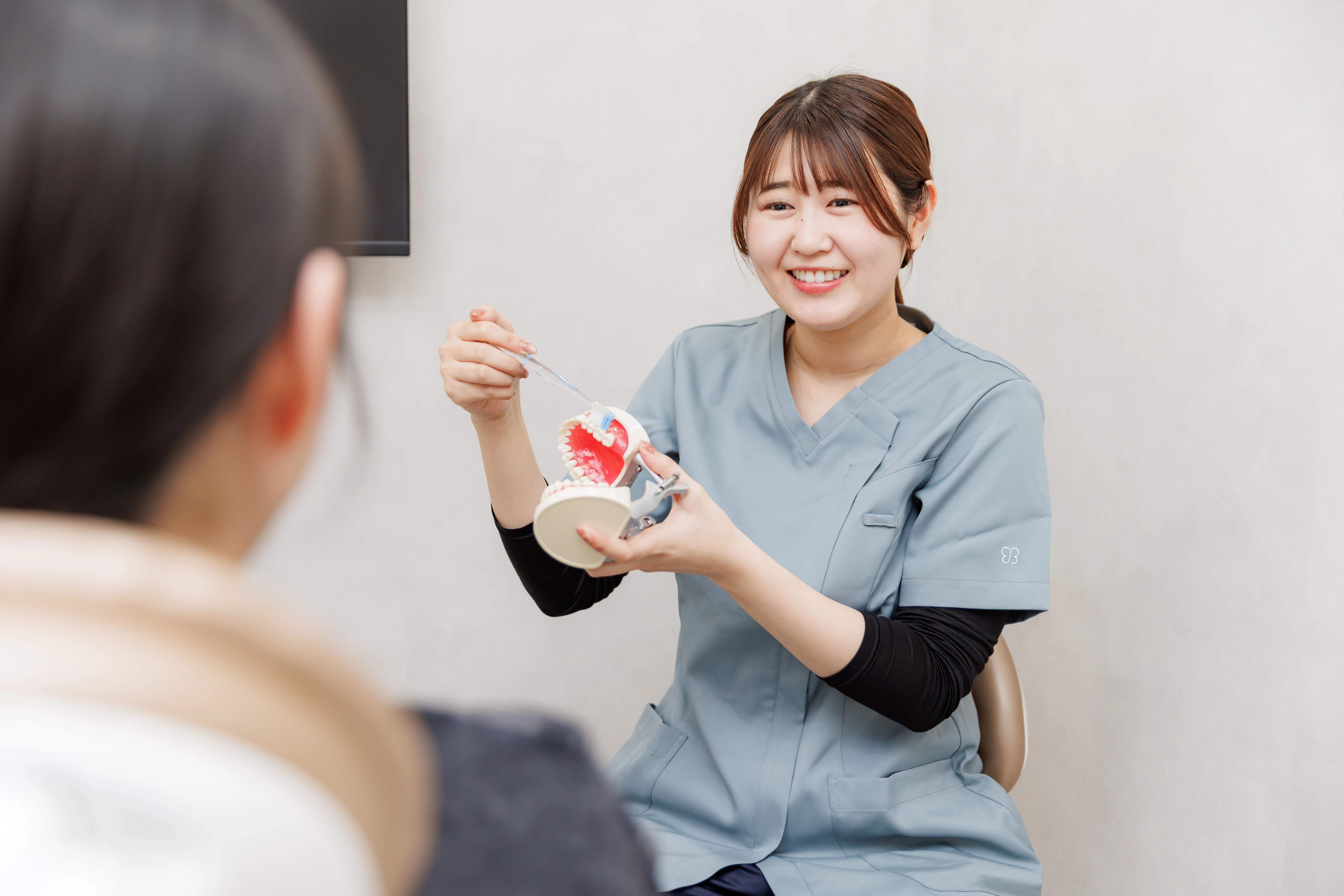 歯周病は自覚症状が少なく、気づかないうちに進行することもあるため、 早めのチェックが大切です。 削った歯は元に戻らないからこそ、痛くなる前から通う“予防中心の歯科医院”として、 生涯自分の歯で過ごせるようサポートしています。
